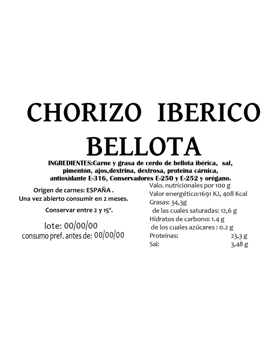 It is the product of the selection of lean Iberian acorn-fed pigs, added with natural sea salt, Pimentón de la Vera, spices and authorized additives. It is embedded in artificial casing, allowing it to be pieces with a homogeneous caliber and length. Its shape is horseshoe and the weight per unit is 0.33 kg. approx. The sale is made in packs of 2 units.
