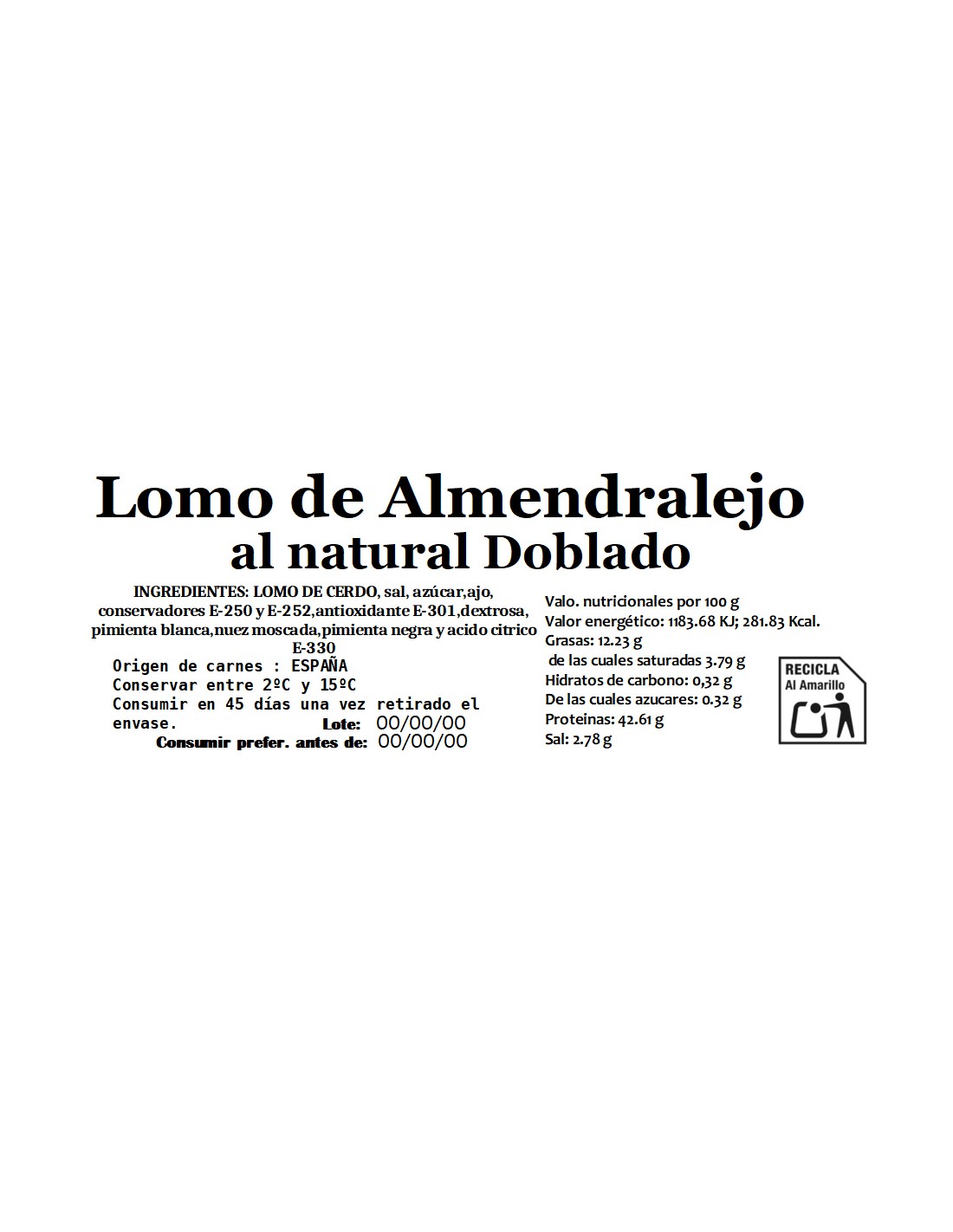 Lomo Doblado de Almendralejo Briz Selección al Natural.